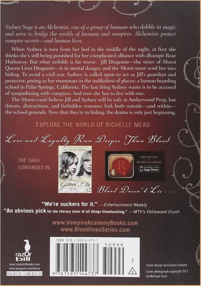 Richelle Mead's Bloodlines series is a spin-off of her Vampire Academy series. In this first installment of the Bloodlines series, the story takes place shortly after Vampire Academy ends. Sydney Sage is an alchemist, humans who act as a link between the worlds of humans and vampires through magic. Alchemists need to protect the secret of vampires and human lives both. In this story the Alchemists group get involved and put Sydney in a plan for the safety of Morai princess Jillian Dragomir. In order to protect her, Sydney has to start living with vampires, her worst nightmare. Filled with numerous secrets, intrigues, and plotting, it makes for an interesting read for fantasy lovers.