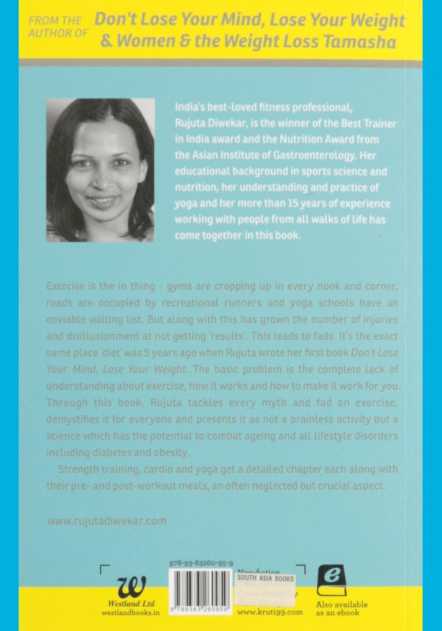 This book is stuffed with all the information one should begin with for a weight reduction/fitness regime or set one on a right track, if presently following one. Most of the myths that people have regarding lifting weights, working out in the gym, cardio-exercises, yoga are discussed. It answers all the fitness related queries with proof and the science behind fitness. It describes how precisely the body functions, how it burns fat, why and how you have to mix up workout regimes for the most ideal results. The writing is not clinical but rather approachable. The author mentions fitness being a long term activity. This book of her can be depicted as the handbook of health. Read it to set on a journey of exercising and getting fit.