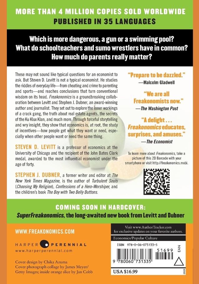 Although the questions dealt with in Freakonomics are unique and widely disconnected from each other, there's a common thread that connects them: Incentives. Be it the sumo, the school teacher, or the foot soldier of a crack gang, these people had strong incentives(surprisingly, not always financial) to do what they did. This book encourages you to look beyond the obvious and trust statistics more than popular beliefs. Great read to think differently.