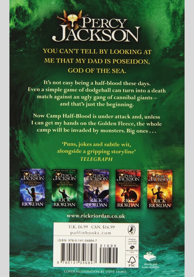 "The heroic son of Poseidon makes an action-packed comeback in the second must-read installment of Rick Riordan's amazing young readers series. Starring Percy Jackson, a ""half blood"" whose mother is human and whose father is the God of the Sea, Riordan's series combines cliffhanger adventure and Greek mythology lessons that results in true page-turners that get better with each installment.In this episode, The Sea of Monsters, Percy sets out to retrieve the Golden Fleece before his summer camp is destroyed, surpassing the first book's drama and setting the stage for more thrills to come."
